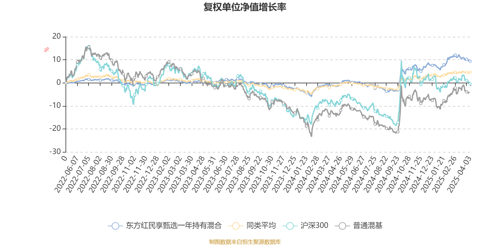 截至4月3日,东方红民享甄选一年持有混合近三个月复权单位净值增长率为2.35%,位于同类可比基金134/670;近半年复权单位净值增长率为4.22%,位于同类可比基金93/670;近一年复权单位净值增长率为10.69%,位于同类可比基金41/667。