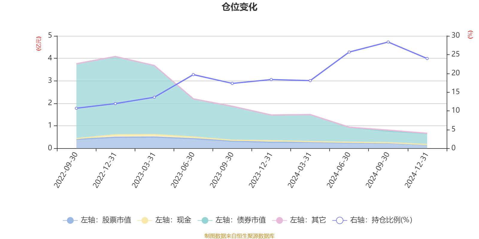 据定期报告数据统计,成立以来平均股票仓位为18.76%,同类平均为18.74%。2024年三季度末基金达到28.36%的最高仓位,2022年三季度末最低,为10.69%。